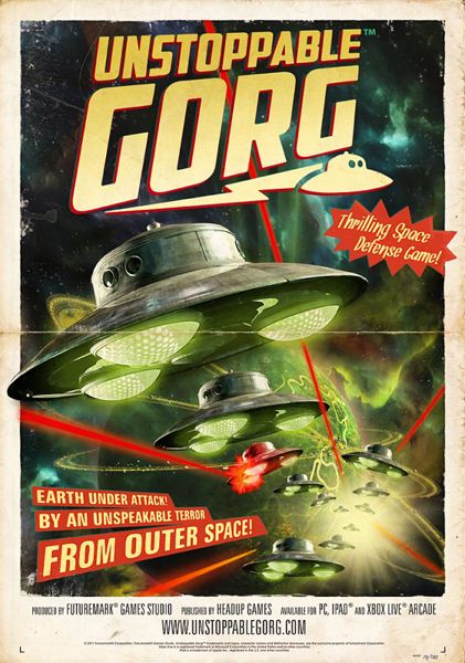 Unstoppable Gorg — экшен / стратегия в жанре tower defense, стилизованная под научно-фантастические фильмы 1950-х годов.Вооружившись боевыми спутниками, населению земли предстоит отразить нападение агрессивной внеземной цивилизации под названием Gorg.При этом, вопреки традициям жанра, игрок может двигать уже установленные спутники относительно их орбит.