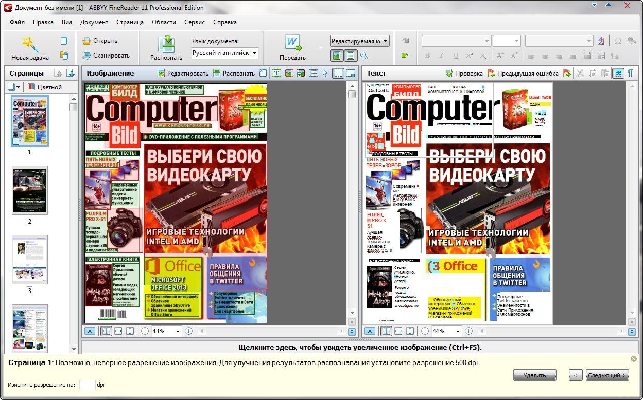 Сохранение полного дизайна. Благодаря революционной технологии адаптивного определения ADRT®2.0 (Adaptive Document Recognition Technology) программа точно распознаёт документы со сложным форматированием. Новая версия ABBYY FineReader анализирует документ как единое целое, при этом вполне сохраняя его логическую структуру: оглавление и гиперссылки, разноуровневые заголовки, номера страниц, нижние и верхние колонтитулы, подписи к картинкам, а также стили шрифтов и заголовков. Легкость использования. Интерфейс программы содержит окно с типовыми сценариями. Для удобства использования сценарии поделены на группы, опции сохранения вынесены в это же окно. Пользователь выбирает подходящий сценарий конвертирования и за один щелчок мыши получает редактируемую копию документа. При необходимости юзер может распознавать документы в программе шаг за шагом. Для уменьшения количества кликов и наиболее резвой работы с программой на верхнюю панель вынесены главные деяния: вызов окна с типовыми сценариями, клавиши «Открыть» и «Сохранить», это помогает минимизировать время на поиск нужного деяния в меню программы. Мобильный телефон заместо сканера. Новая версия программы поддерживает работу со всеми популярными моделями сканеров и многофункциональных устройств, а также корректно распознаёт фото текстов, изготовленные с помощью цифрового фотоаппарата или фотокамеры мобильного телефона. Для обработки изображений, изготовленных с помощью фотокамеры мобильного телефона, в программе предусмотрены последующие функции: исправление трапециевидных искажений, устранение шумов и нечёткости изображения. Поддержка большинства мировых языков. ABBYY FineReader распознаёт документы на 186 языках на основе кириллицы, латиницы, греческого и армянского алфавитов, поддерживаются языки на основе иероглифического письма. В новейшую версию программы добавлен новейший язык определения – корейский, тем самым мы продолжаем расширять перечень неалфавитных языков. Для 39 языков предусмотрена проверка орфографии. Система успешно распознаёт документы, объединяющие тексты на 2-ух и наиболее языках, в том числе документы содержащие «смесь» алфавитных и иероглифических языков. Автоматическое определение языка определения. Используя умственные алгоритмы, ABBYY FineReader автоматом получает информацию о языках, на которых написан документ, и использует ее при распознавании. Сохранение в PDF и PDF/A форматы. В программе доступны все функции сохранения в PDF с возможностью поиска (текст под изображением, текст над изображением, только текст и рисунки, только изображение). При необходимости юзер может защитить созданный PDF-файл паролем. Оптимизация для многоядерных микропроцессоров. Все большее число компьютеров оснащается 2-ух- или четырехъядерными процессорами. Интеллектуальные алгоритмы ABBYY FineReader позволяют отлично распараллелить различные шаги обработки документа (предварительная обработка изображения, анализ структуры, определение, синтез документа) и вполне использовать всю мощность машин с многоядерными процессорами.