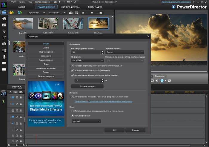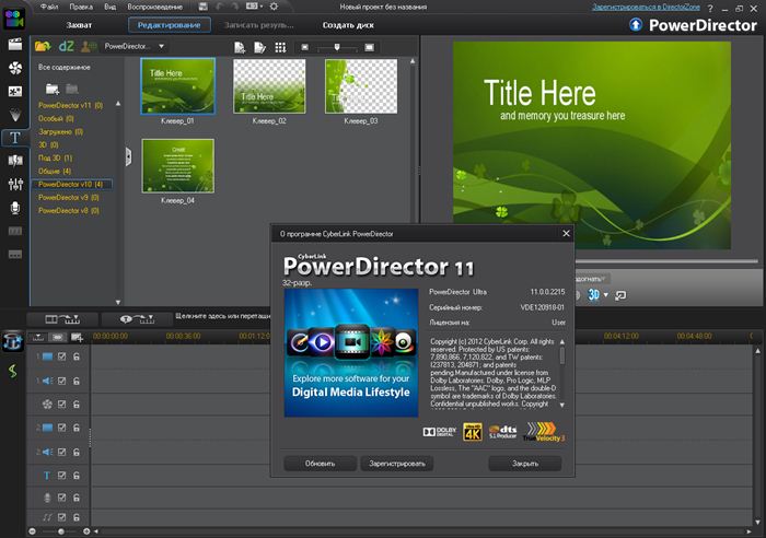 PowerDirector 11 — новенькая версия массивного видеоредактора с неограниченными способностями и широким набором инструментов, применяющая новые технологии, ускоряющие процесс редактирования видео. Неповторимое сочетание скорости, мощности и лёгкости при разработке сложных визуальных эффектов HD видео. PowerDirector 11 дает 3 различных режима редактирования, гибкую временную шкалу, поддерживающую до 100 дорожек, совместим с проф программными модулями от сторонних производителей, включает инструменты для работы с трехмёрным контентом.