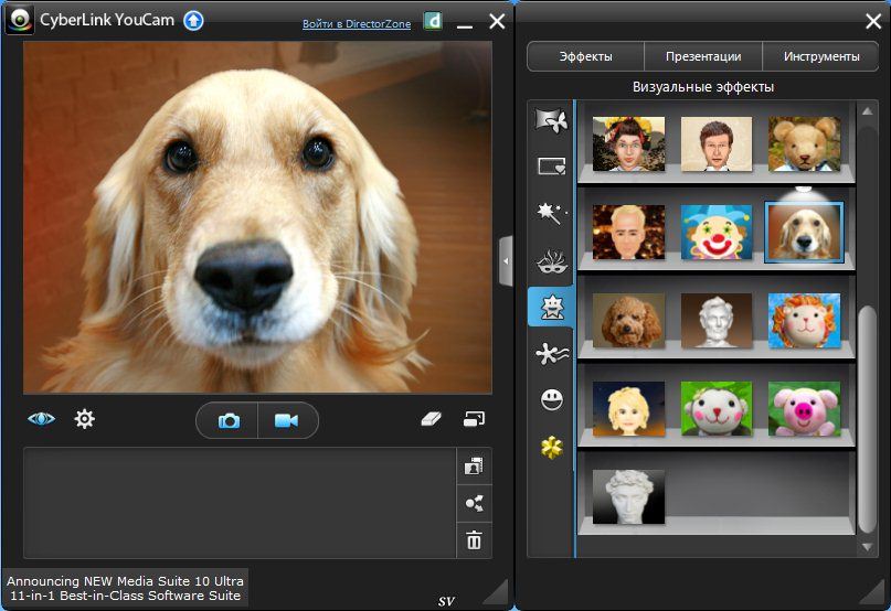 Cyberlink YouCam – простая программка для создания собственных собственных аватар, видеообразов, клипов с помощью web-камеры. YouCam неподменна для онлайновых видеочатов и включает поддержку фаворитных решений Яху! Программка позволяет добавить динамические эффекты к вашей сетевой видеокамере. Веселитесь во время видео-чатов, добавляя emotion effects. Применяйте эффекты сходу же во время захвата видео и фото. Загружайте ваши клипы прямо в YouTube. Сходу же отправляйте свои фото и видео друзьям по электронной почте. Двухрежимный пользовательский интерфейс упрощает внедрение программки CyberLink YouCam. В режиме мгновенного обмена сообщениями можно участвовать в многопользовательском видеосеансе с друзьями с помощью веб-камер, применяя мгновенные эффекты в режиме реального времени. Секундные эффекты разрешают добавлять рамки, фильтры, искажения и чувственные эффекты к видеоизображению с веб-камеры. Это позволяет дополнить видео смешными и креативными видеоэффектами.