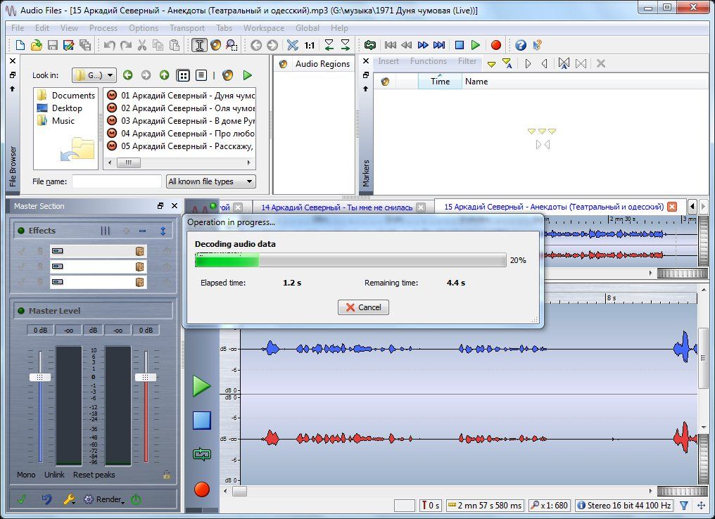 Среда Audio File Это безупречное место для точного анализа и редактирования файлов аудио. Как только вы загружаете файл, все способности WaveLab 7 готовы анализировать, редактировать и выпускать материал. Несколько функциональных таблиц и опций, например, управление метками, либо таблица загрузки файлов, доступны сразу и ускоряют работу.